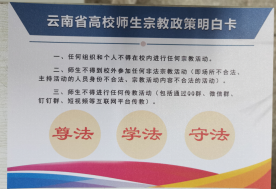 2021年10月13日,为了贯彻落实党的宗教工作方针政策,进一步提高英国威廉希尔英文官网全体同学的政策法规能力和水平,英国威廉希尔英文官网治安中队全体成员对男生宿舍和女生宿舍进行宗教卡片发放,党的宗教政策法规宣传,以此增强每一位同学自觉抵御宗教渗透的能力。