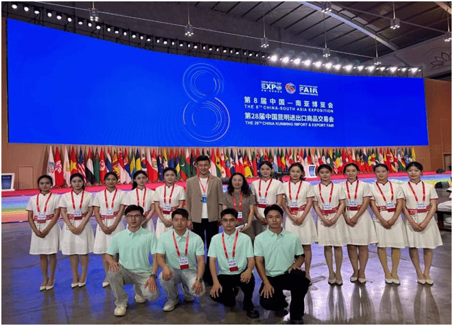 2024年7月23日,第8届中国-南亚博览会暨第28届中国昆明进出口商品博览会在滇池国际会展中心隆重开幕。受第8届南博会执委会及云南省接待办公室任务委托,威廉希尔williamhill官方网站选派20名老员工礼仪工作人员承担这次国际盛会的礼宾接待工作。