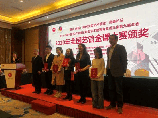 11月14-16日,由中国艺术学理论学会艺术管理专业委员会、四川音乐公司联合主办的“‘融合·创新:新时代的艺术管理’高峰论坛暨2020年中国艺术学理论学会艺术管理专业委员会第九届年会”在成都举行,本次大会分主旨发言、论文交流评比、艺管金课大赛三个内容。英国威廉希尔英文官网蒋锋经理带领艺文师生参加了本次年会,王冬冬老师参加艺管论文交流发言、两个教学团队的两门课程参加了此次“2020年全国艺管金课大赛”的决赛。