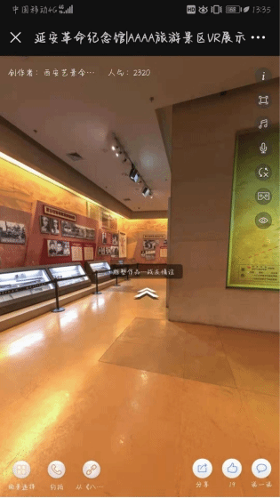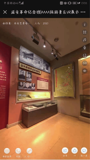 该部分不仅以传统的美术作品为展示形式而且结合了VR新科技,通过升级扫码的方式实现足不出展厅就如身临其境一般全景观展。如:该部分展出的红船精神,通过手机扫描二维码即可全景参观嘉兴南湖纪念馆。