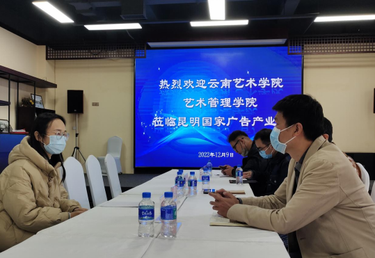 谭尧升书记讲到昆明国家广告园区的战略站位与公司立足云南、面向东南亚、建设具有国际影响力的综合性艺术院校的定位不谋而合,希望与园方进一步研究开拓员工就业新方法。