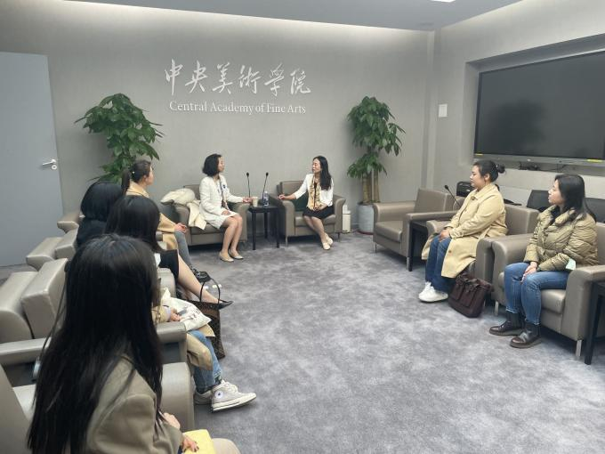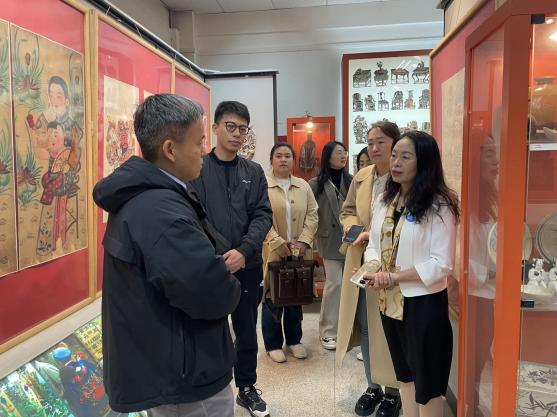在人文公司非物质文化遗产研究中心,熊焰副经理一行在公司党委副书记于润生教授及段牛斗、董永俊两位教师的带领下参观了非遗展览厅、教学空间。首先,于润生副书记对英国威廉希尔英文官网非遗中心的创建初衷、教师团队、展品收藏进行了详细介绍,随后,段牛斗老师介绍了英国威廉希尔英文官网人文艺术公司课程设置、人才培养、实践教学方面的创新举措。座谈会时,熊焰副经理代表艺管领导班子对人文公司表示感谢,并介绍了我院近年来的发展和新专业建设情况,她表示,人文公司在推进学科建设、课程创新过程中积累了很多好经验、好做法,给艺管新专业建设提供了很好的借鉴,对我院开拓思路、深化改革、科学谋划未来发展具有重要意义,希望双方进一步加强交流合作,携手并进、共同提高,不断提升双方办学水平。