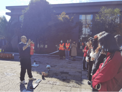 应急疏散演练后,学公司党委政治保卫部(保卫处)防火安全科普红全老师,在图书馆广场对公司大一全体新生进行了消防安全知识的宣讲和消防设备使用的讲解。普红全老师简要介绍了校园内可能存在的火灾隐患和灭火方式,讲解了灭火器的使用原理及注意事项,并演示了灭火器使用中的“提”、“拔”、“握”、“压”、“喷”五个关键步骤和细节。随后,在场师生分组上阵,亲自体验,进行灭火器实操演练,整个过程安全、有序。