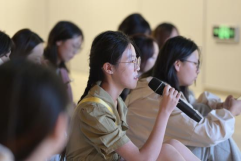 活动的过程中,黄丽蓉老师不时提出问题,引导同学们思考,同学们积极响应,提出了自己的见解和疑问,现场气氛活跃。黄丽蓉老师对同学们的提问给予了耐心的解答和鼓励,进一步激发了他们对艺术的热情和对市场规律的探索。黄丽蓉老师还强调了艺术展览的创意和积累的重要性,她鼓励同学们对艺术保持兴趣和见识,并坚信艺术的力量。